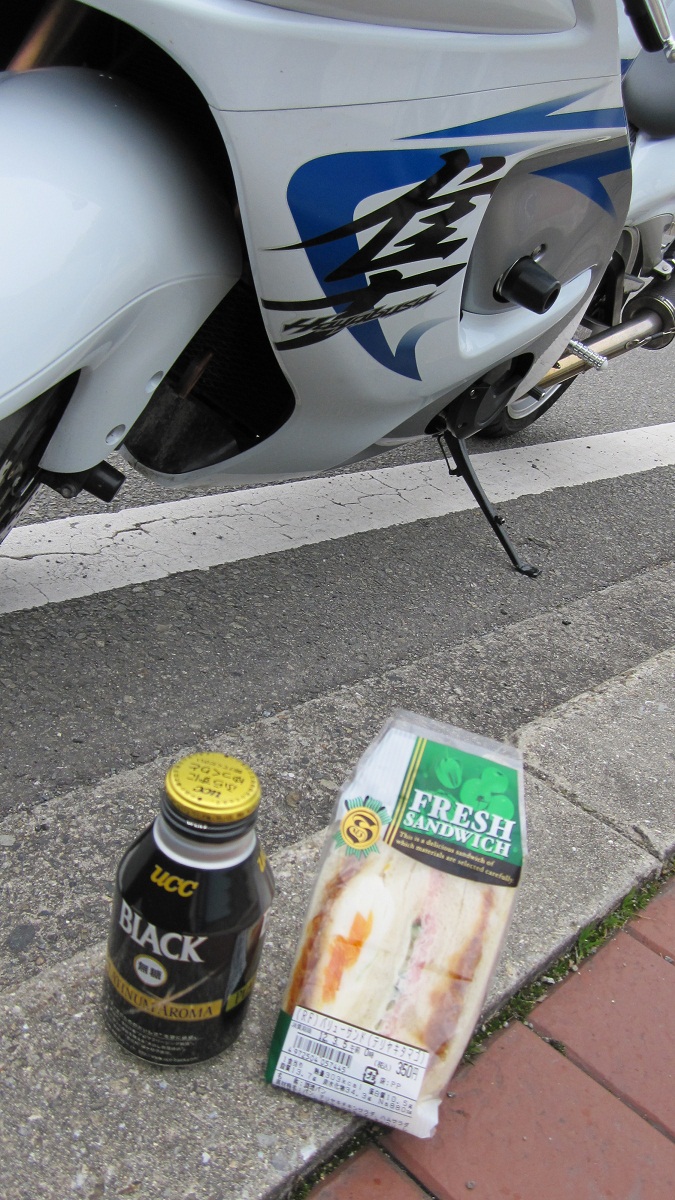 仮設販売所で『温かいうどん』を食べれず…これまた不本意ながらサンドウィッチとホットコーヒーで朝ごはん。