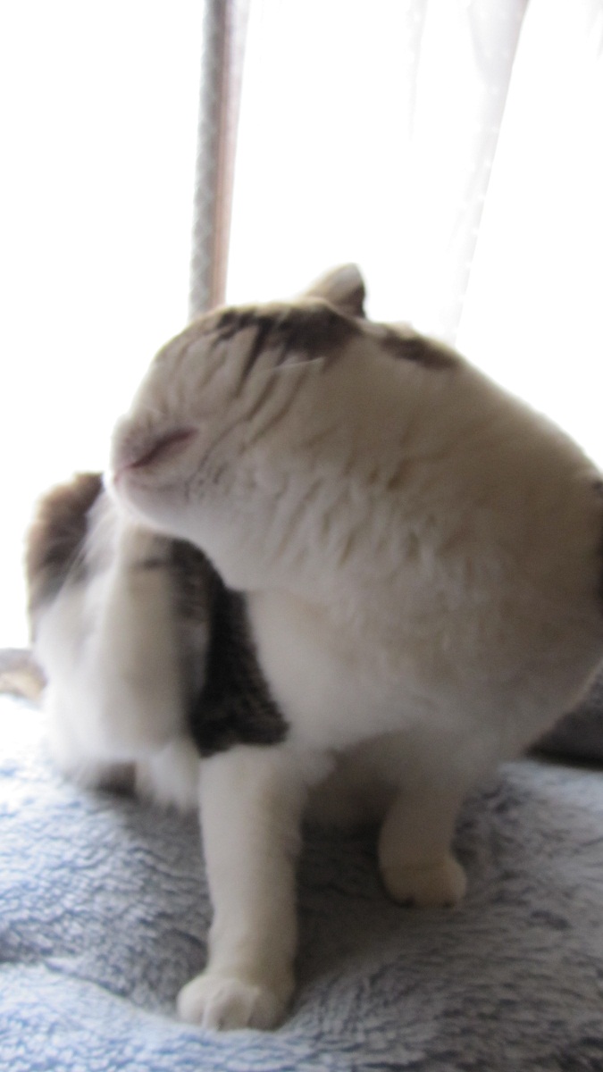 その証拠が…顔の毛の寝癖がしっかり腕の形に残ってます(爆笑)