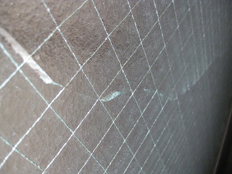 ここのベランダのガラス…『スリガラス&鉄線入り』の高いやつ