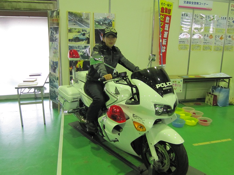 白バイに跨って婦警さんに撮って貰ったりご満悦♪