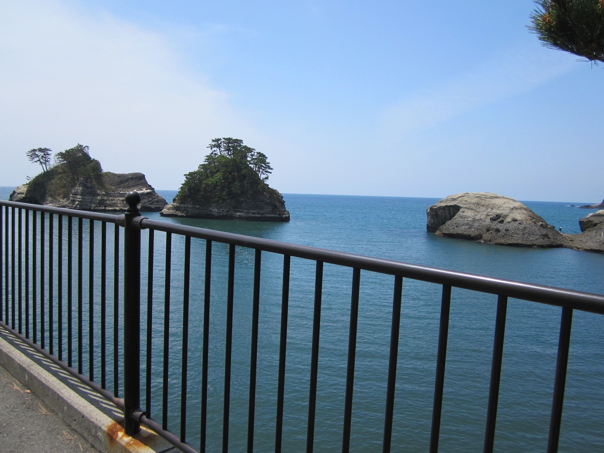 結構な急勾配なワインディングなんかもあったりして、恋人岬を過ぎてしまった所綺麗な地層が見える…島?岩?があったのでバイクを停めて写真を撮ります♪
