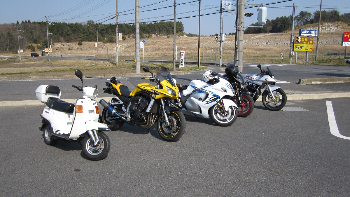 ファイナル刀のヨシさんが先頭で、ビューエルのハラダさん、ニャンブサのニャンポコ、フェザーのMさん、ジェンマのジェンマ乗りさんの順でマスツー開始です♪