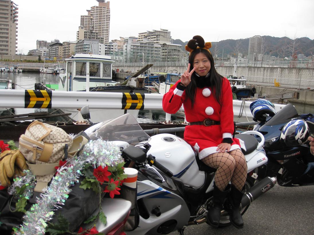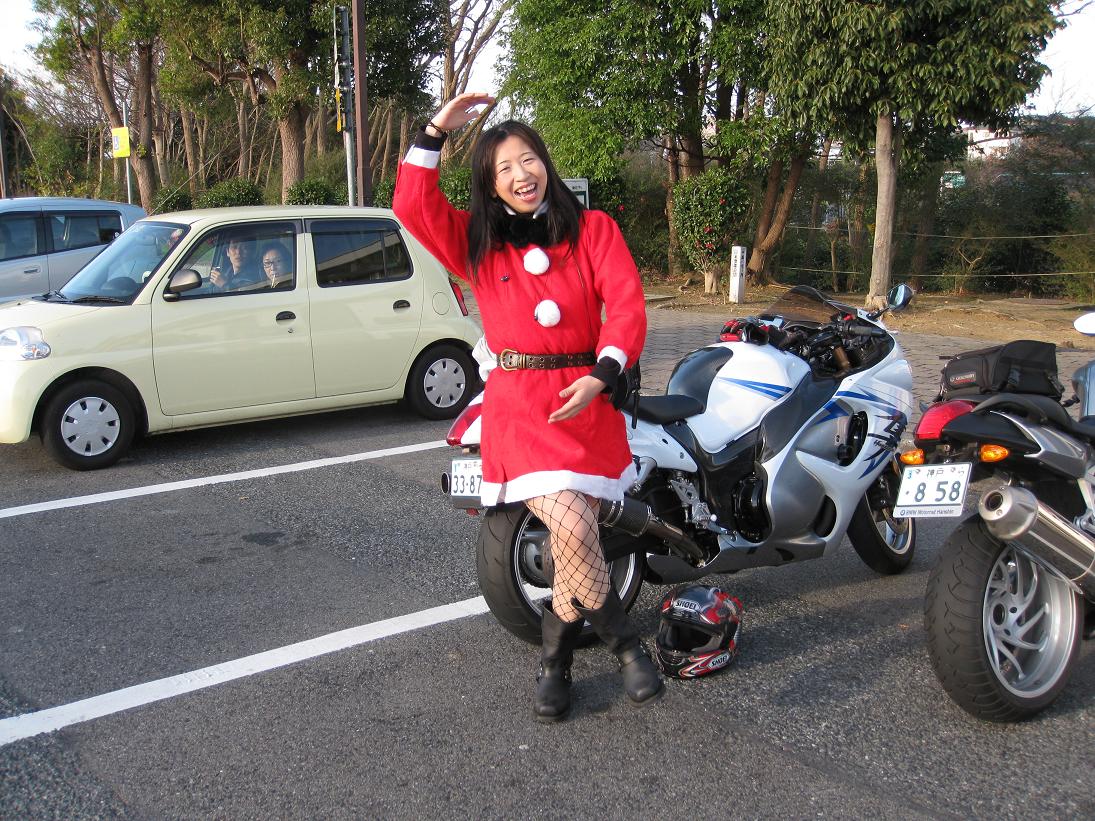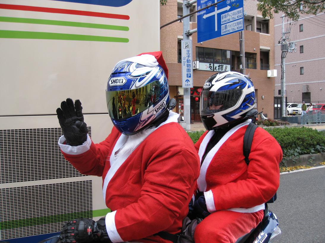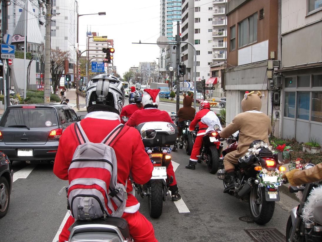 後ろからメンバーの『めぇさん』もサンタ姿で向かっていたので3台で走りました。