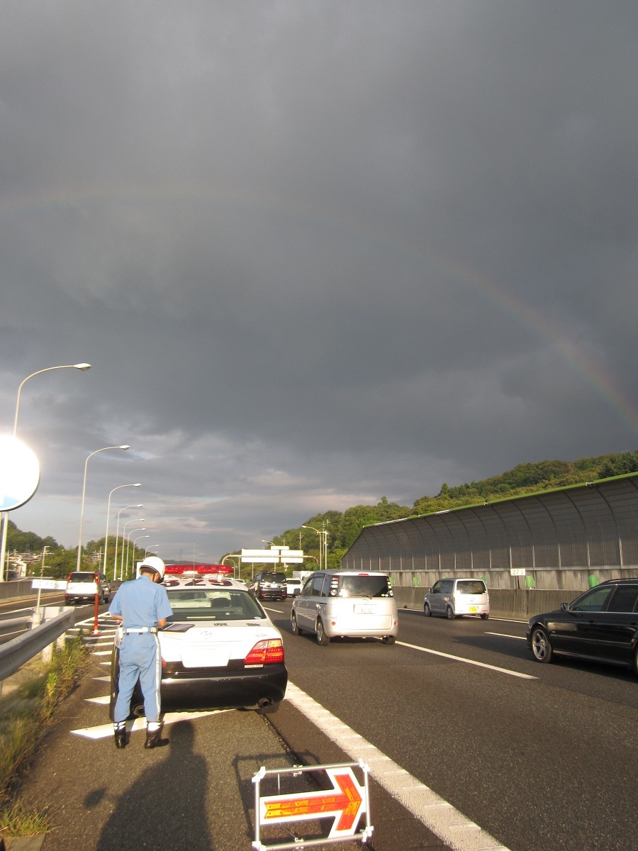 と、取り締まりを受けている時に綺麗な虹が出たので記念写真っ♪