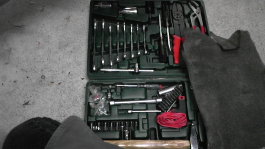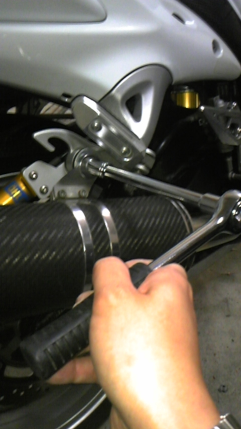 さて、ラチェットとレンチを取り出してナットを緩めます…