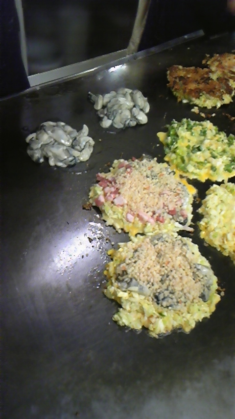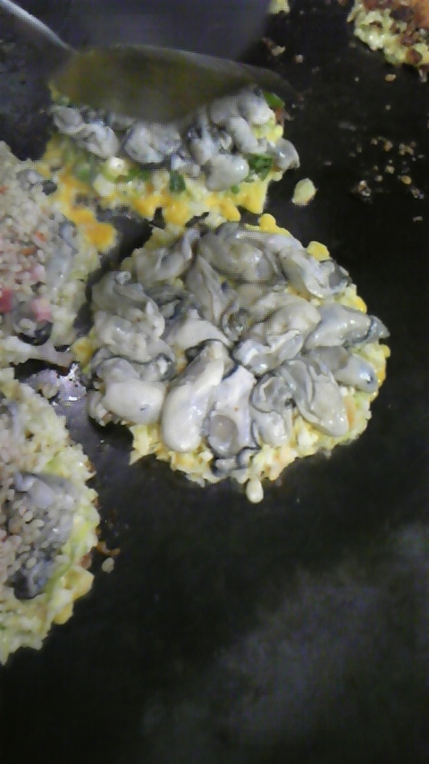略さず、漢字を入れて言うと『牡蠣お好み焼き』です。