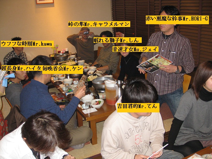 Ms.sato嬢、Mr.もも吉氏、Mr.キャラメルマン氏、Mr.kawaちゃん氏、Mr.てんちゃん氏、Mr.ezu氏、Mr.村さ来氏、Ms.あお嬢、