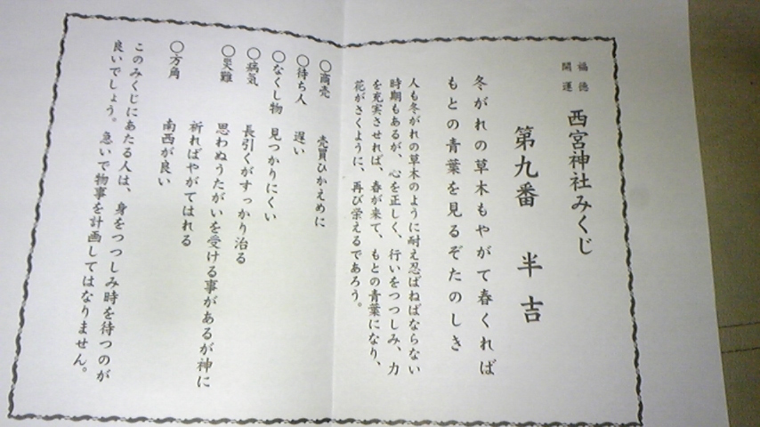●災難 思わぬ疑いを受ける事があるが、神に祈ればはれる(って、結局は神頼みやな…)
