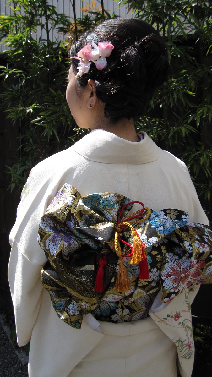 結婚式なので帯を少し華やかに結んでもらいます♪