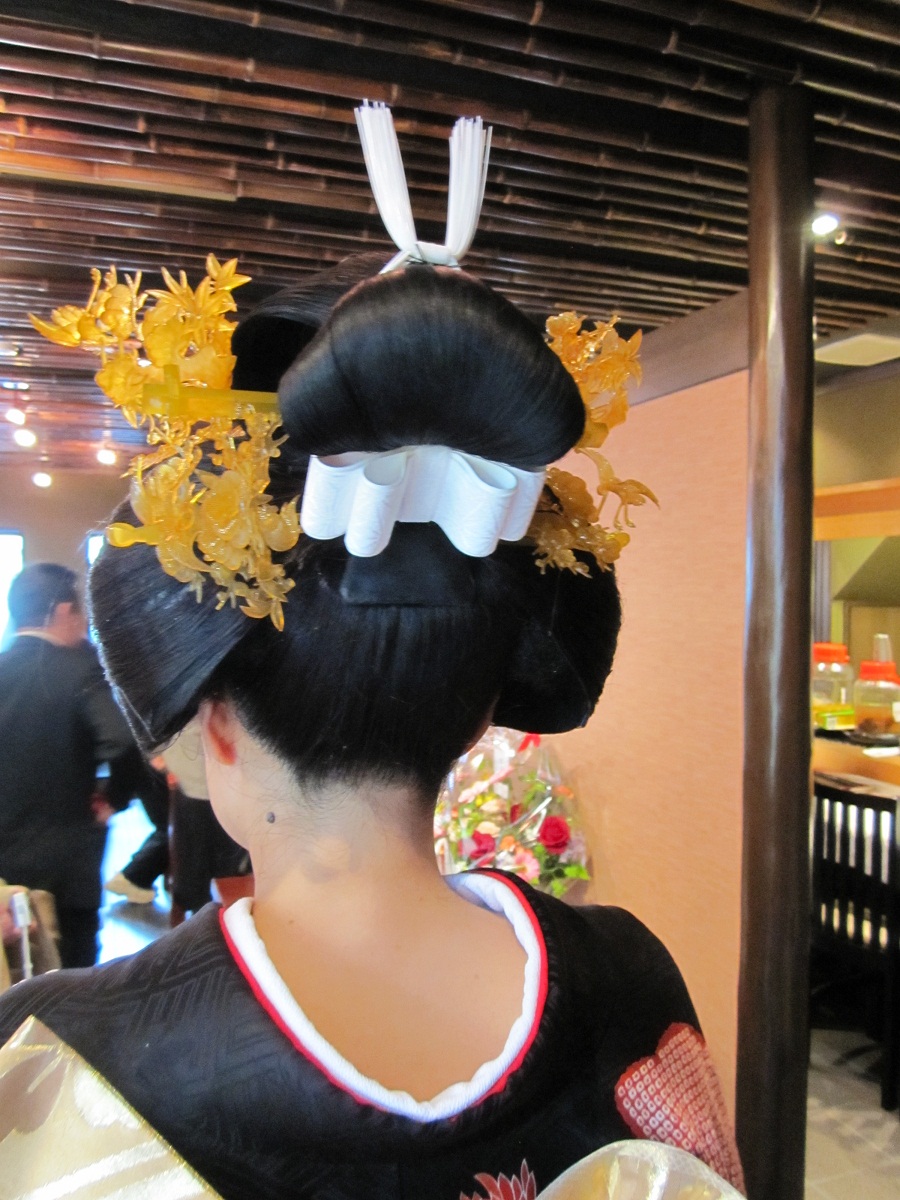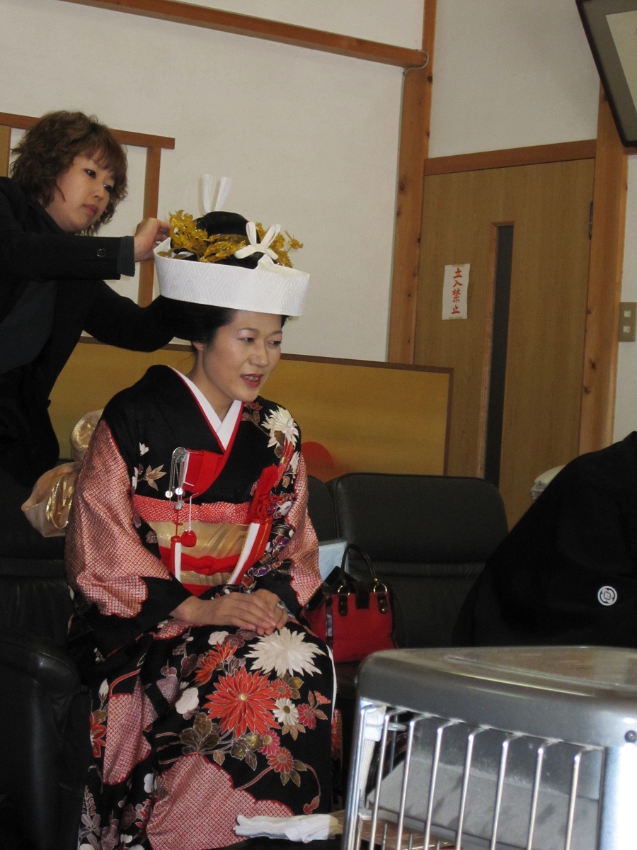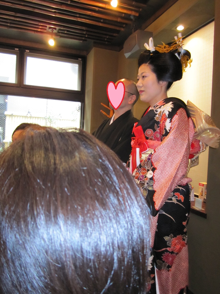 ビラ姉さんは、綺麗な『文金高島田(ぶんきんたかしまだ)』を結ってもらって、着物もとても綺麗で似合ってます♪