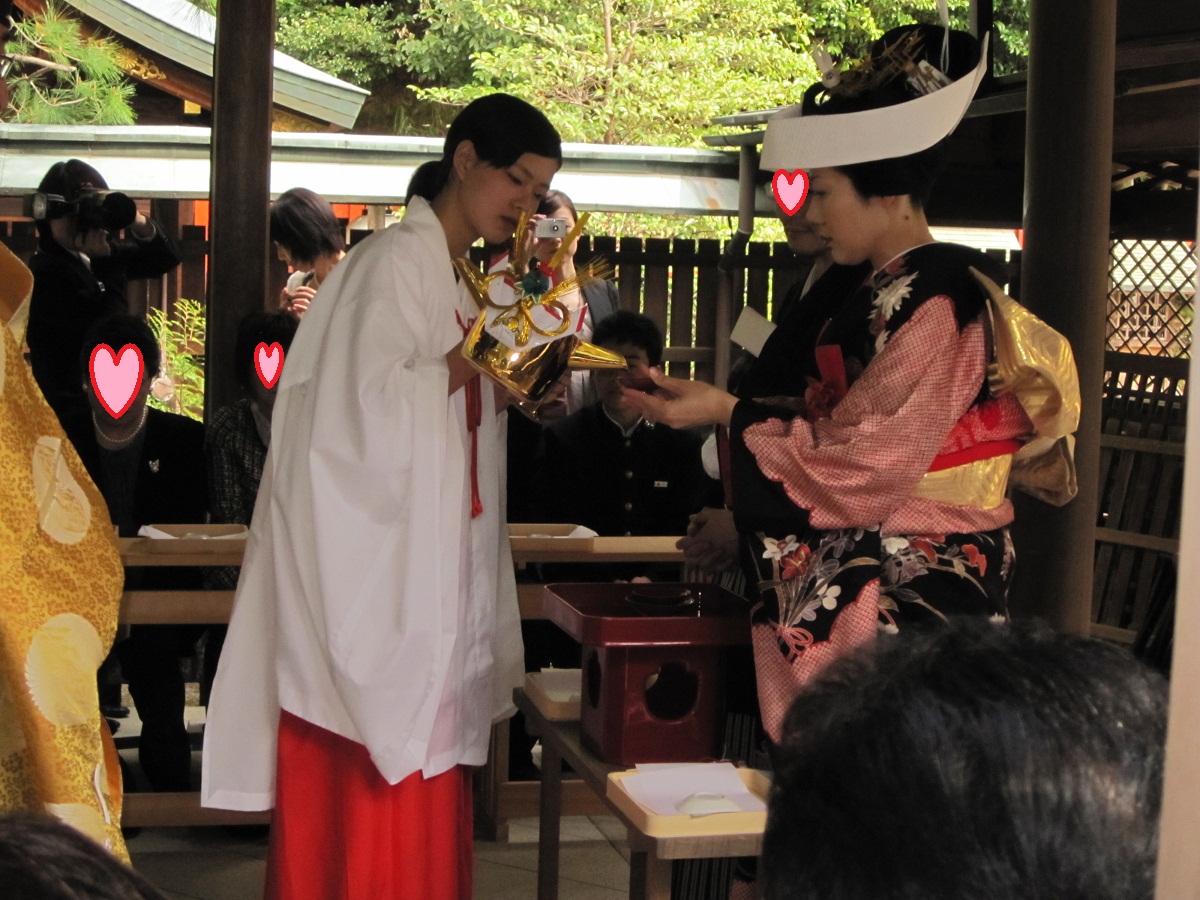 そこで、祝詞を賜って、三々九度の盃を交わします。