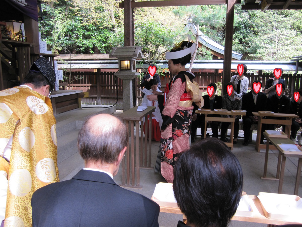 お式は左京区一乗寺にある『八大神社』にて和装。