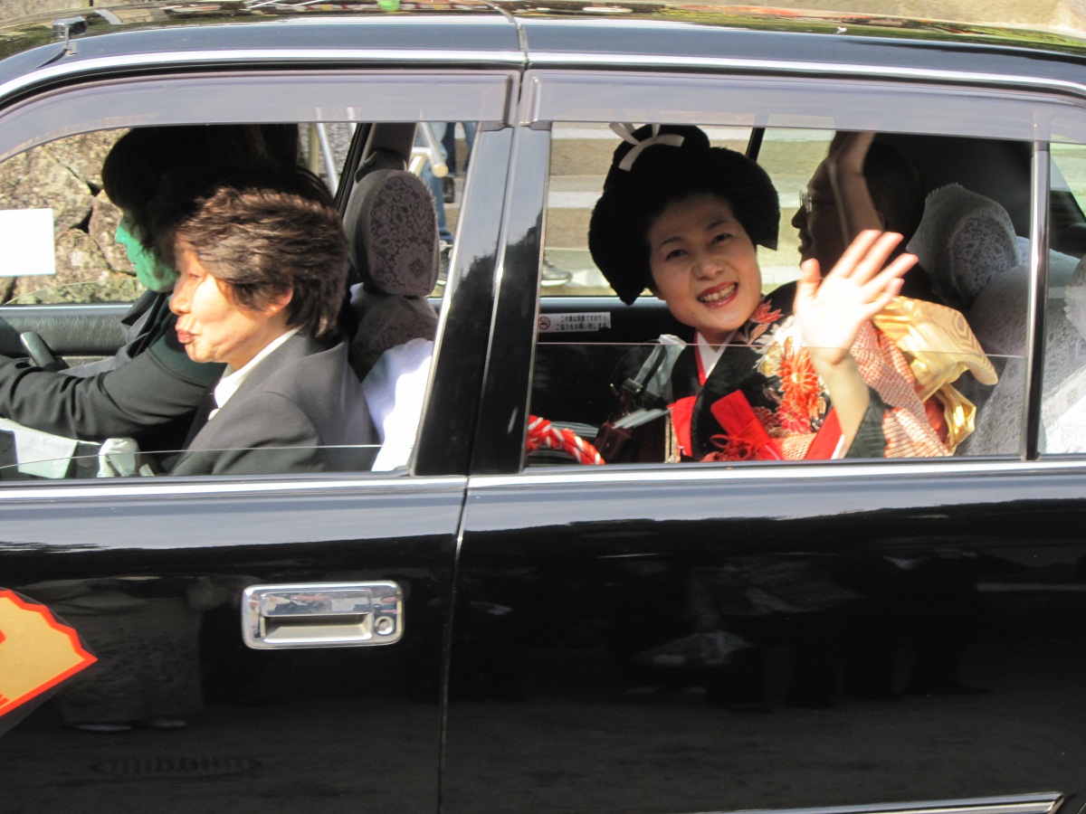 しかもシートには網があって、花嫁様がその綱を持って乗り込むそうです(笑)