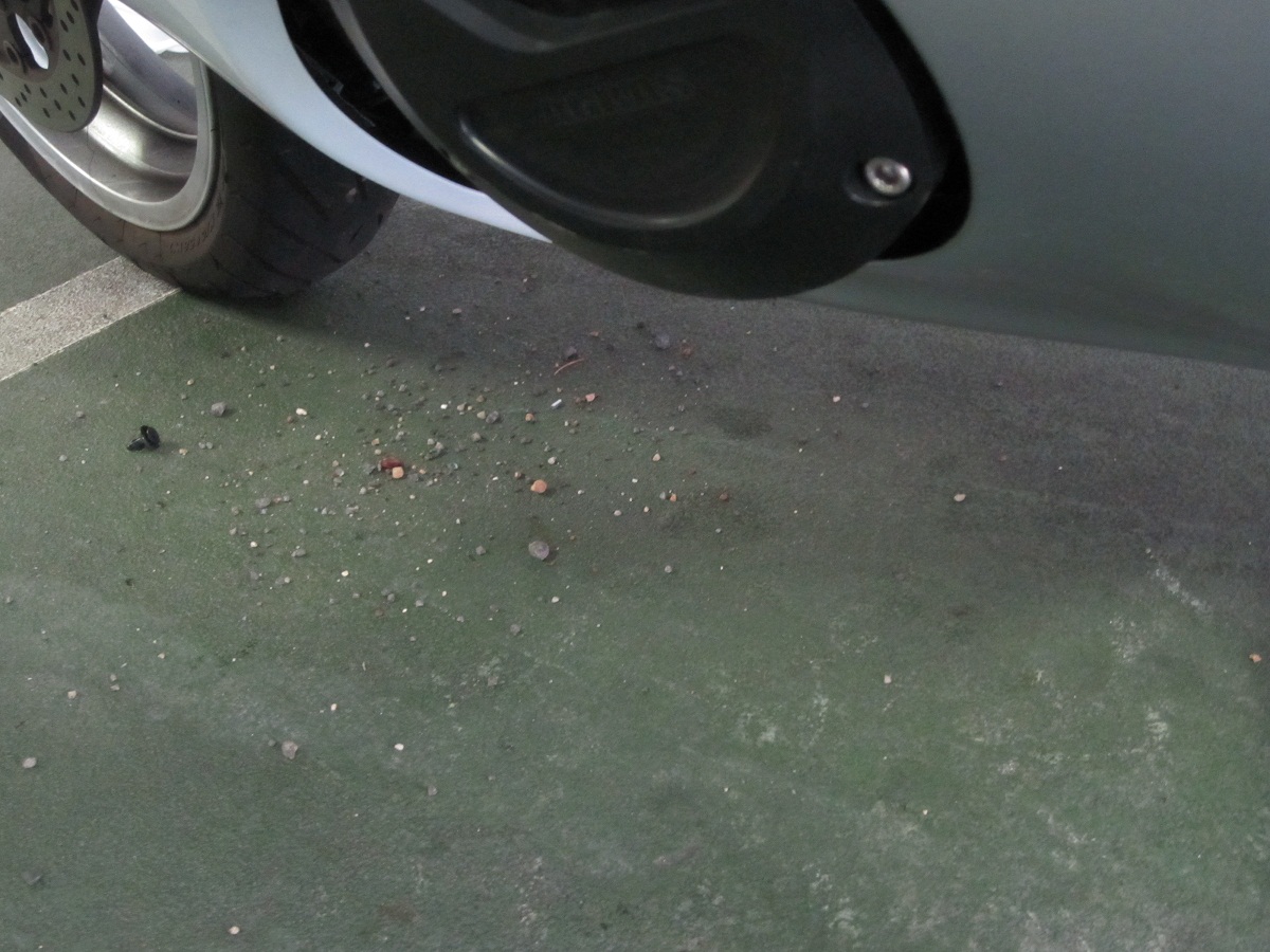 カウルを外すと…小石がバラバラと落ちてきました(゚∀゚;)