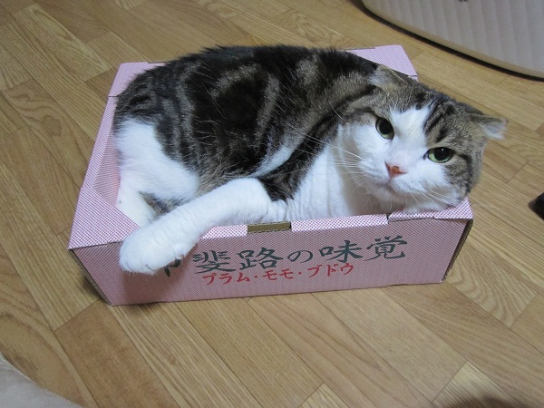 このちゃんは巨峰箱が大好きで入ったり出たり…