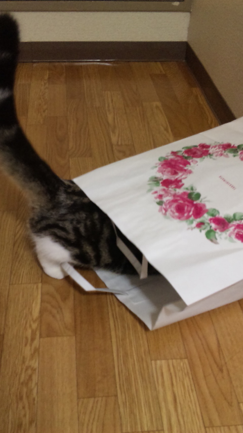不本意ながらも買い物をした『高島屋』の紙袋で、このちゃんが物凄く一生懸命遊んでいます。