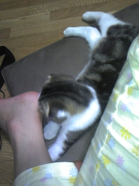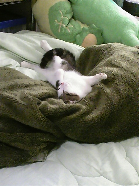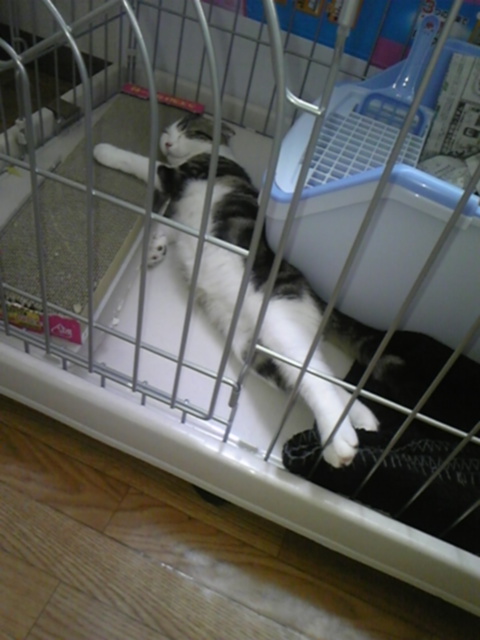 二日目にして『ヘソ天』で伸び伸び寝ています(゚∀゚;)