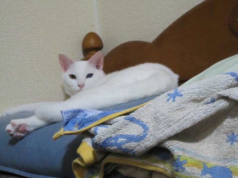 夜、頭の上付近で『白い子』は普通な姿で寝ている。
