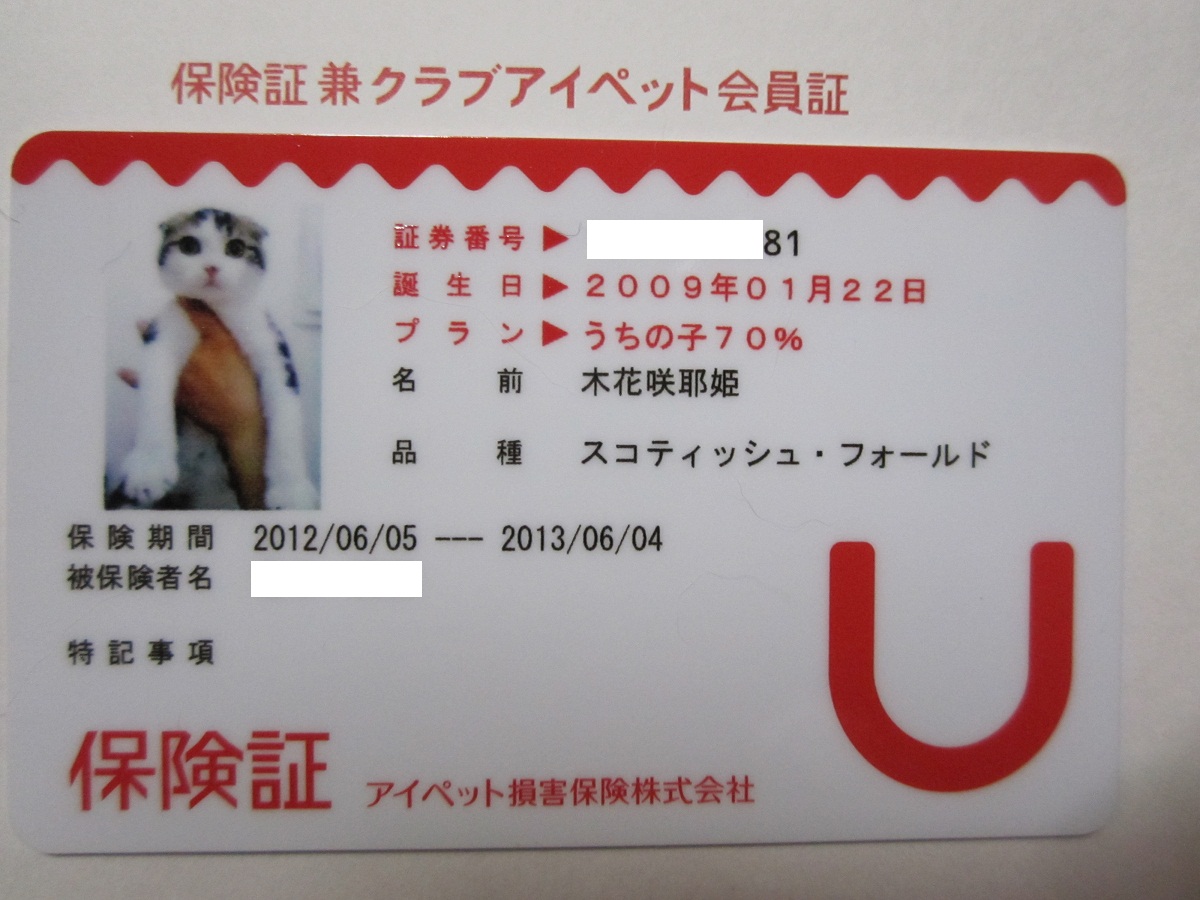木花咲耶姫の損害保険証です♪
