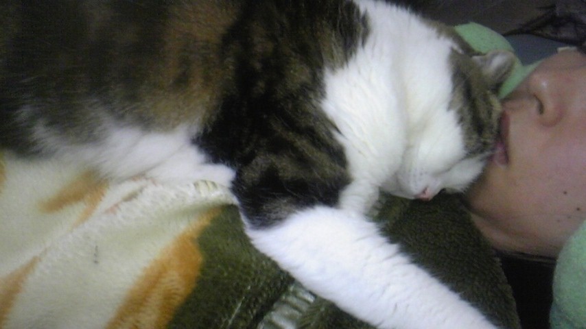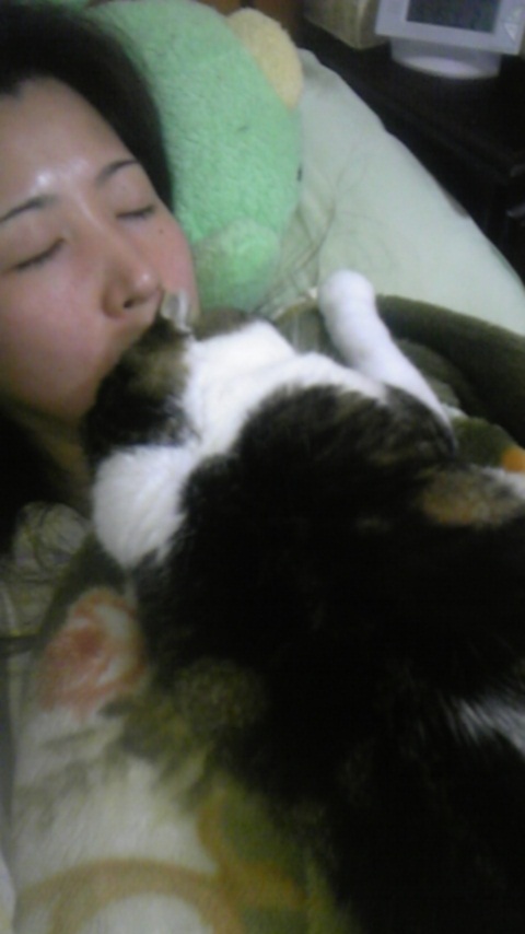 豊玉ちゃんも寝る時はご主人様にべったりで、時々いびきをかいて寝てるそうです♪