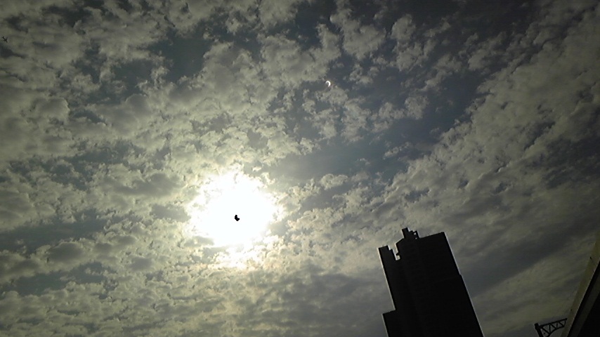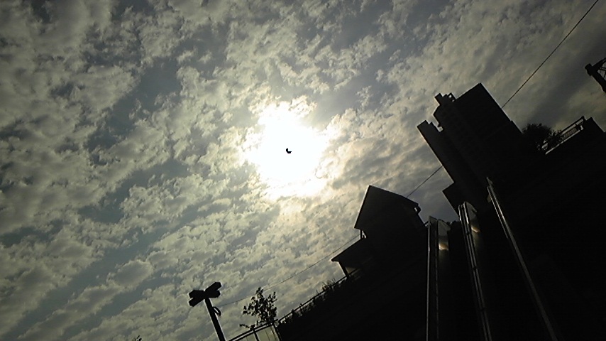 そして、バスの時間が来たので、バスに乗って、降りた頃には金環日食は終わりに向かっていってます