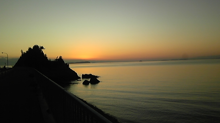 途中、夕焼けがとても綺麗だったので、写真を撮るために車を停める。