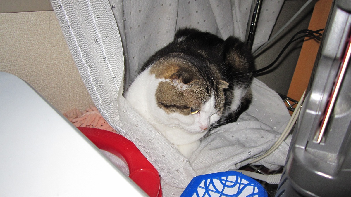 んで、お気に入りの場所のひとつである『テレビの後ろ』でマッタリ中を激写♪