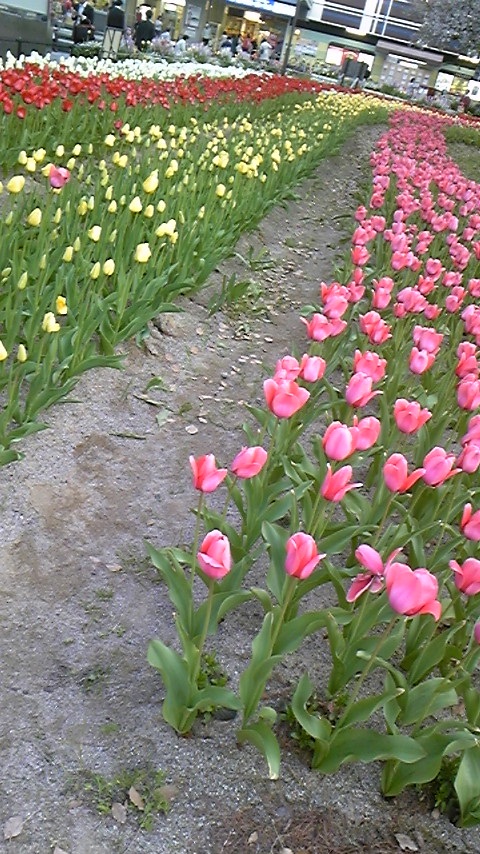 阪神尼崎駅前は大量のチューリップが咲いていて綺麗です♪